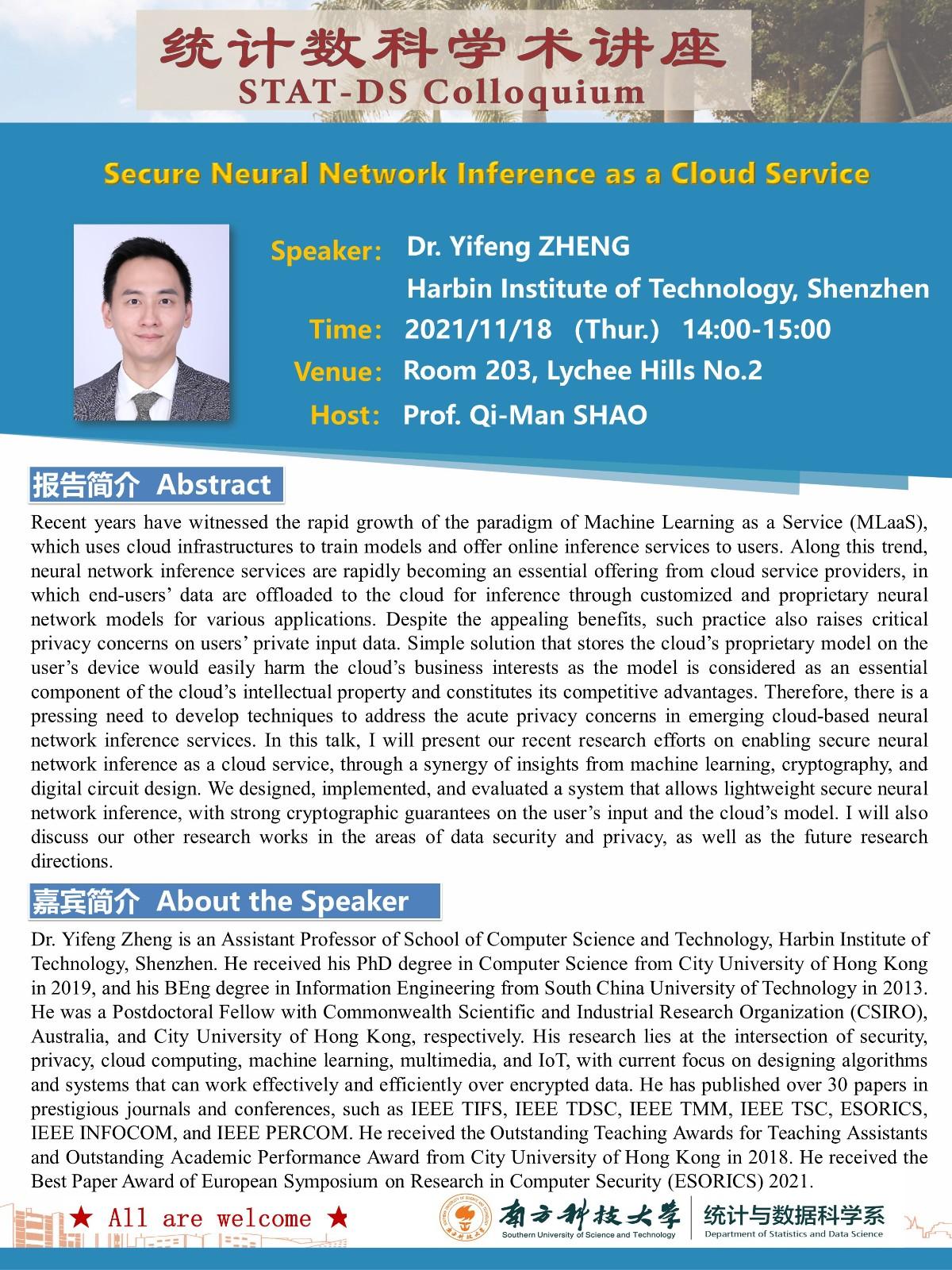 Secure Neural Network Inference as a Cloud Service