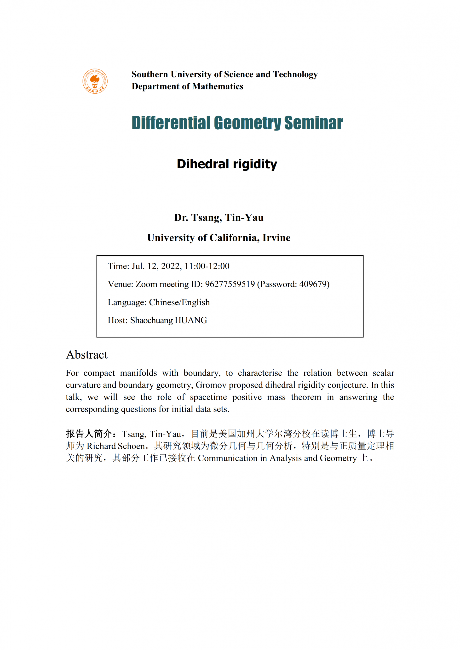 Zoom ID:96277559519, Passcode:409679