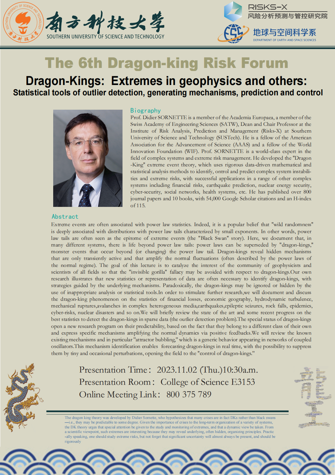 - WHERE: College of Science E3153(Online Meeting Link:800 375 789)